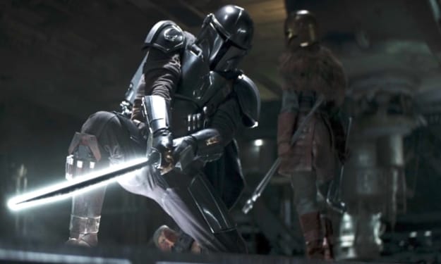 "Chapter 5: The Return of the Mandalorian" of The Book of Boba Fett wasted no time in bringing Din Djarin, modern Star Wars' famed Mandalorian, back in action on-screen. In catching his bounty, a nefarious butcher, Din once again showcases his expertise in combat by going for the "bring you in cold" option. Rather than guns blazing, the bounty hunter ignites the iconic Darksaber, cutting down the butcher's henchmen one by one with no mercy. However, despite his jack-of-all-trades nature in weapons mastery, Din observably struggles in wielding the ancient blade, even accidentally wounding his leg in the process.