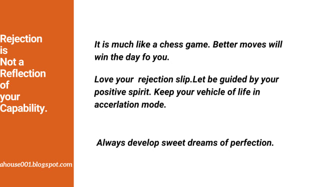 How do you feel when a door closes before your eyes? Yes, it gives us direction for our next course of action complete with clarity. Life is really tough and makes you indomitable to face all of your rejections like a musician. They bear it with patience on a day- to- day basis and keep on refining the tune more appealing. If there is no strength to fight back rejection, we will not find real development among us. Develop your ways to see through your rejection. Work hard, get yourself better prepared mentally and look beyond your comfort zone. Do your best to convert your adversity into your prosperity.