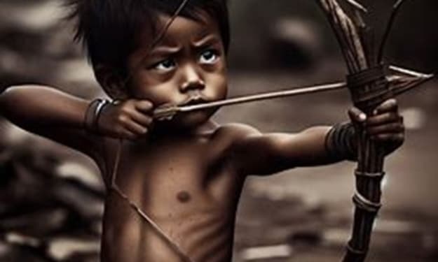 Looking up the street, I saw bicycles flying towards me, their wheels spinning fast, kicking up clouds of dust. I remember it vividly—though I was only about three and a half years old. My young hands gripped a rudimentary weapon: a *bottle kop*, a crude contraption with a bottle's broken neck tied with strips of car wheel rubber, used to shoot arrows made of reeds and bent metal bottle caps. This was no game; this was survival, and I was barely old enough to comprehend it.