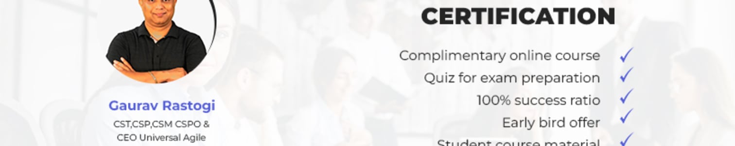 We at Universal Agile believe that Agile is something that you can apply to any industry and to all walks of life. We look forward to being with you on your Scrum Master Certification journey and nurturing you into a Certified Master.