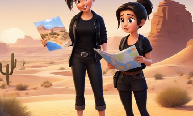 Blas and Laura's Thrilling Escapades Blas rummaged through his jacket pockets, pulling out a crumpled map and a compass. "Alright Laura, according to this, our next stop should be the ancient city of Petra in Jordan," he said, running his fingers over the tattered map. Laura, dressed in her black clothes and hair tied back, scanned the horizon before turning back to Blas. "Sounds like a plan, but we should get moving. We don't want to be stuck in the open when night falls." Just then, a bright blonde head bobbed up from behind a nearby rock.