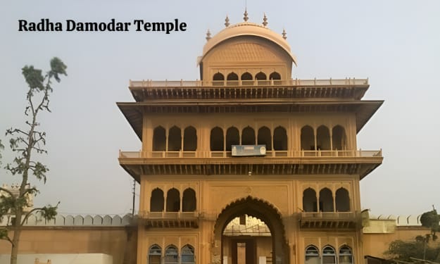 Radha Damodar Temple is located in Vrindavan. The temple has great religious importance in Vrindavan's history and is closely associated with the Gaudiya Vaishnav tradition and culture. The temple is devoted to Lord Krishna's Damodar form and Radha Rani.