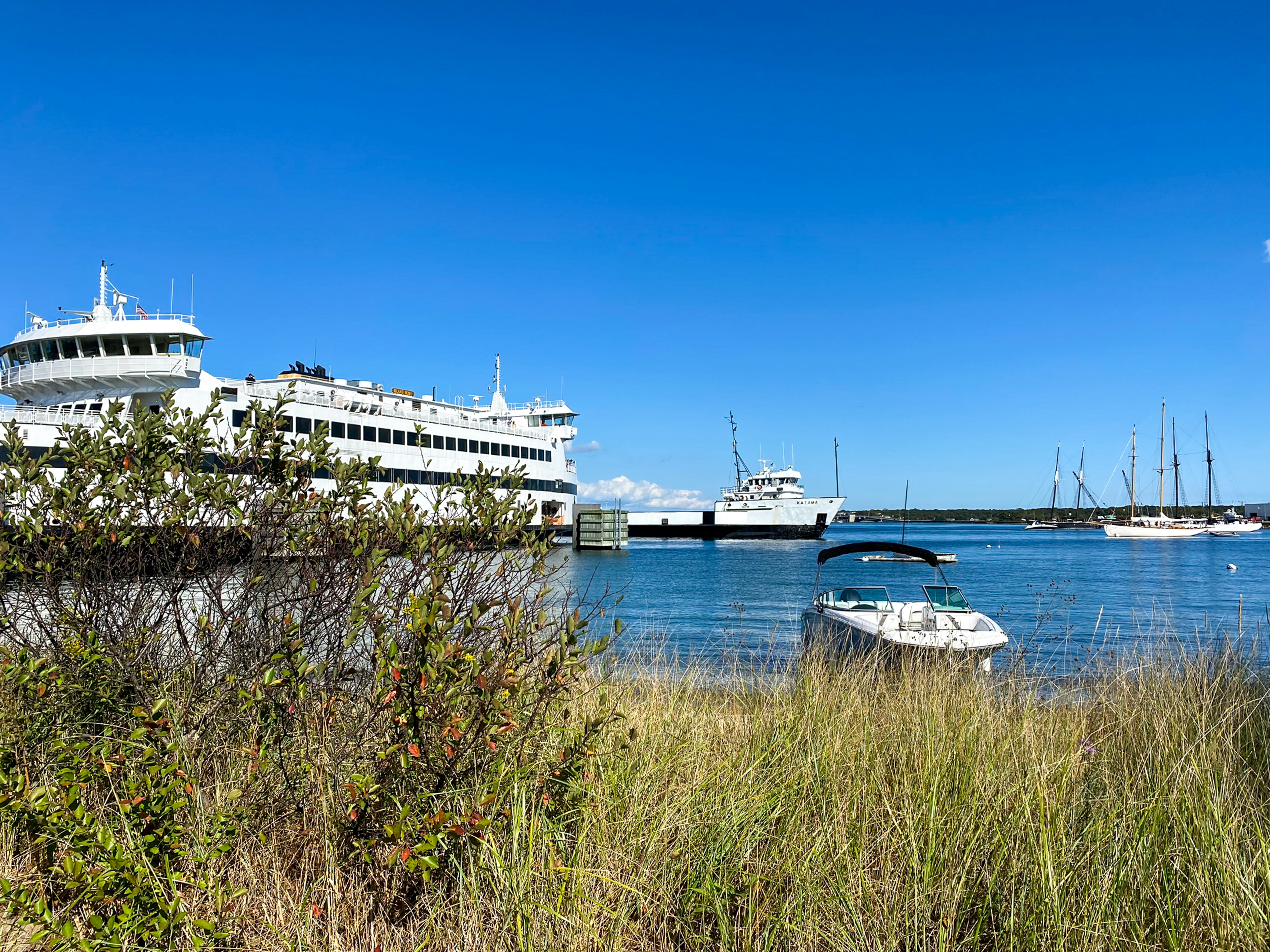 “All onboard vehicle passengers are now required to shut off their engines. The ferry will be leaving Wood’s Hole in exactly ten minutes. The duration of our voyage to Oak Bluffs is just under an hour, and the weather is pristine. Thank you for choosing to sail with us today.”