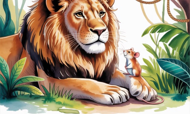 The Mighty Lion** In the heart of the great African savanna, where golden grass swayed under the blazing sun, there lived a mighty lion. He was the king of all beasts—strong, proud, and feared by every creature. The lion ruled his land with a mighty roar, and none dared to challenge him.