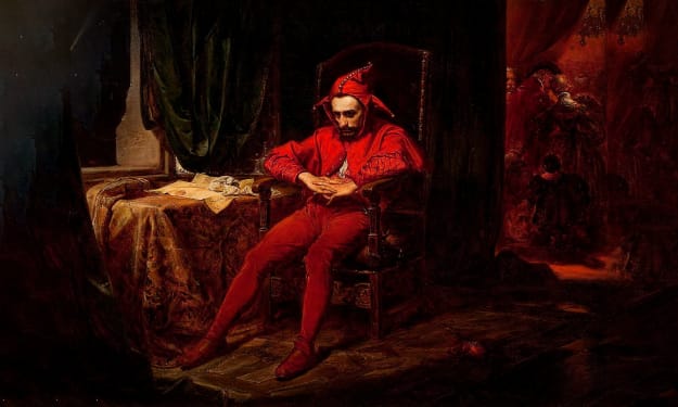 Kraków was engulfed in night like a heavy coat that thickened and resisted shedding, as if there were an invisible force rejecting all life around. Inside a chamber dark as the depths of a comet’s tail spilling through a window, glowing a faint grey, sat a man alone. His clothes were a strange mixture of bright red and black, adorned with jingle bells that rang out laughter, as though whatever once caused them to do so was simply an echo now devoid of sound. This man was Stańczyk, the court jester, yet the expression on his face was anything but jovial. He appeared astonishingly forlorn, his haunted gaze lost deep within the throes of a letter weightily spread open on the table before him. All Stańczyk could notice was a broken, worn wax seal that appeared flaccid like human desire, and the letter whispered softly with the simple phrase 'Smolensk is lost.'
