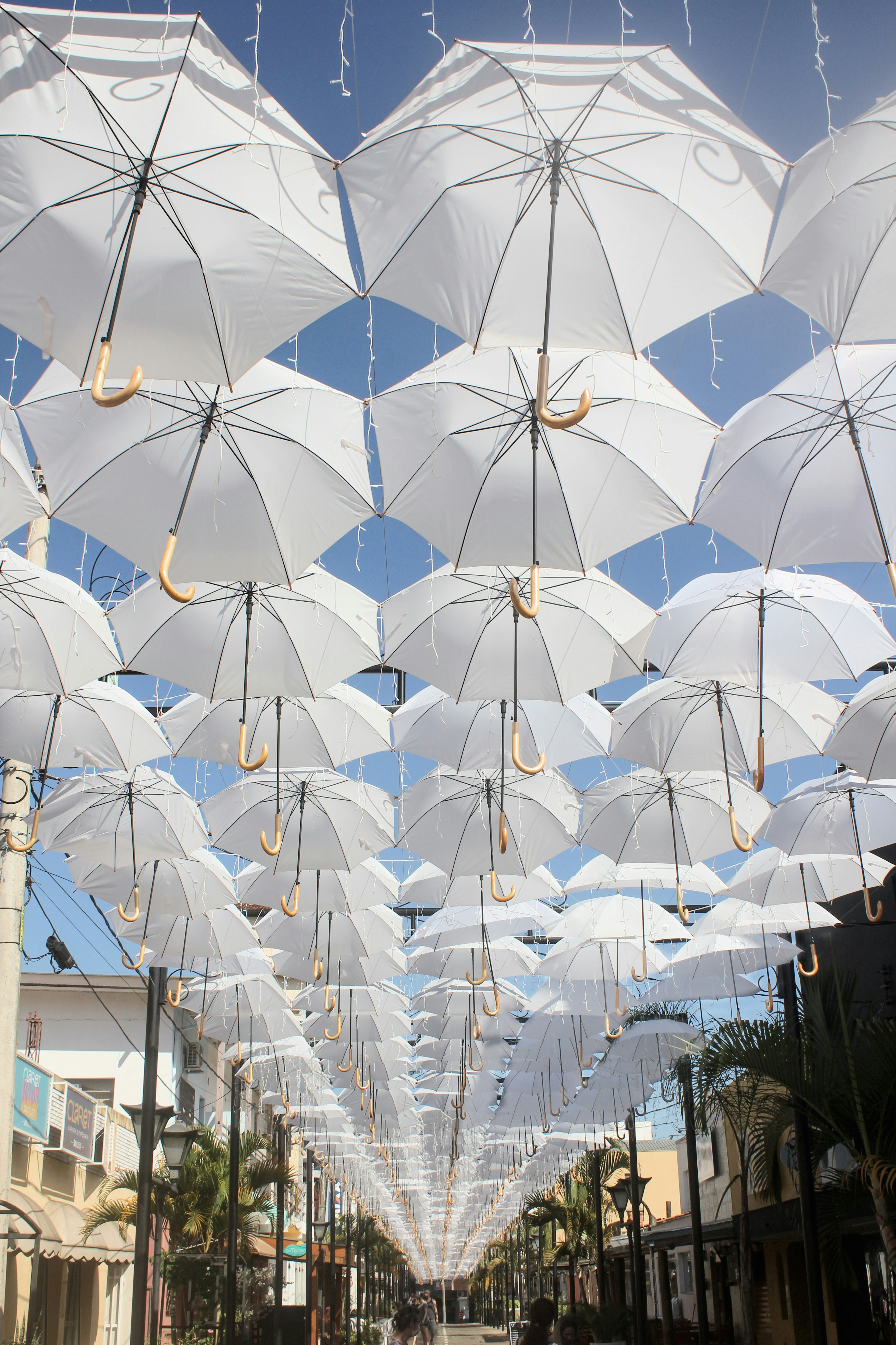 Of that purple light I was afraid. I crouched in the street, covered by shadows from a devilish star, weeping at the purity that was once my shoulders. White. I thought the parasols would illuminate the alleyways and passerby in variegated shades. I wanted to soak in those secrets. But they were white. I stood, burdened by their ironic diffuse.