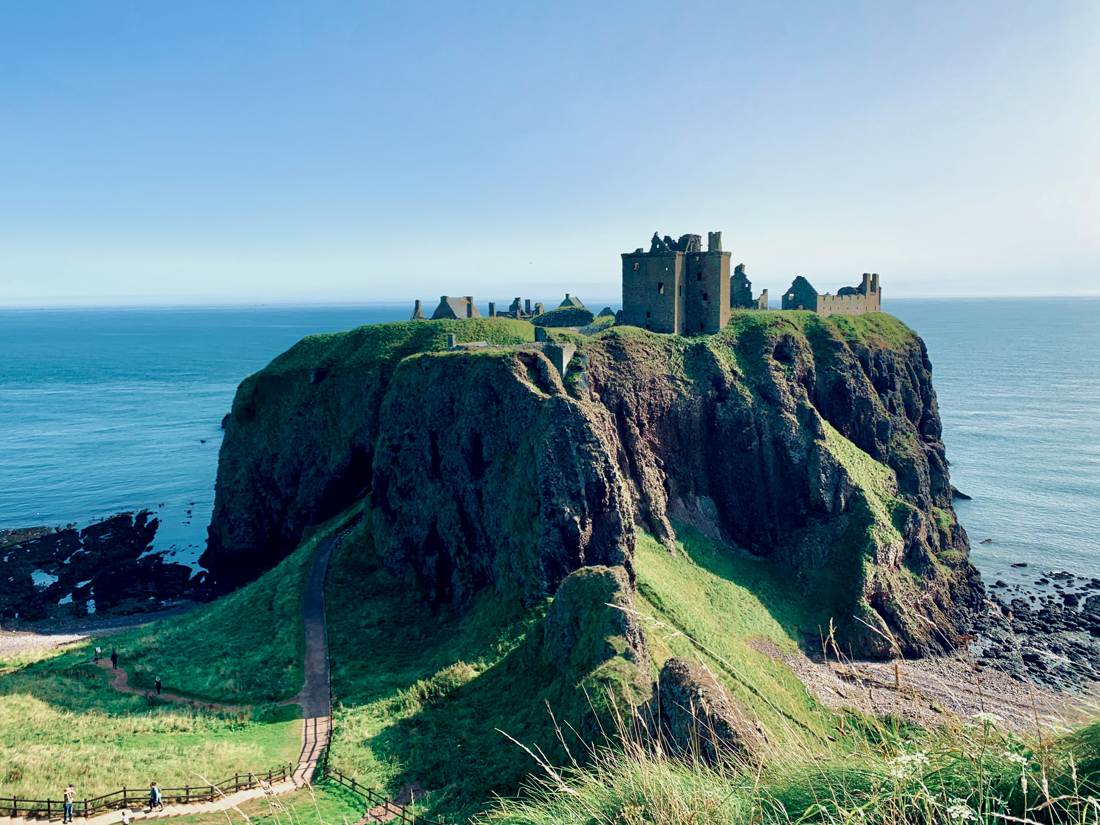 Inaccessible, except for one easy to defend path, the first time I saw it I exhaled. It literally took my breath away. Dunnottar Castle is spectacular. On the east coast of Scotland a few miles south of Stonehaven, the fortress sits perched on a rocky headland jutting into the North Sea.