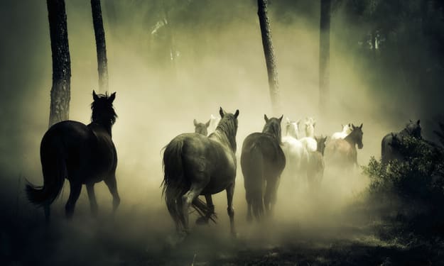 Last night I dreamt of the horses. Running wild and free, those magnificent beasts, the thunder of their hooves even drowning out the terrible roar of the guns and the staccato blasts of the machine guns. For a while they were free again, running down a hillside in France, while bullets whizzed past them and mortar blasts lit up the sky. Their eyes wide and terrified, hearts pounding, jumping over their fallen comrades to escape.....running for their lives. I awoke shaking, wishing it were a dream, then as reality clawed though my unconscious state and the sound of the guns brought me back to where I was I realized how much I wished I was one of them, those wonderful wild and terrified animals, who for a few brief moments were free again, running wild in the woods.
