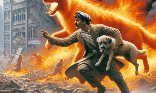 In the heart of the sprawling wilderness, where towering pines kissed the sky and the earth whispered secrets of ages past, a man named Mr. Smith and his loyal companion, a golden retriever named Goldie, embarked on a journey into the depths of nature's embrace. Little did they know, their adventure would soon become a harrowing tale of survival as they faced the fury of a raging forest fire.
