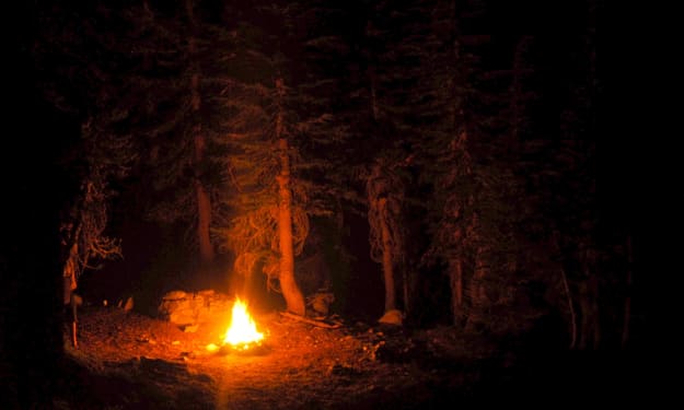 Sam Echo sat in his favorite light blue camping chair. His 4 other friends sat in their chairs around the campfire. They had just finished eating their steak and potatoes they made using their campfire. To Sam, this was the meaning of life. Out in the woods with his favorite people. This is the trip he looked forward to every year.