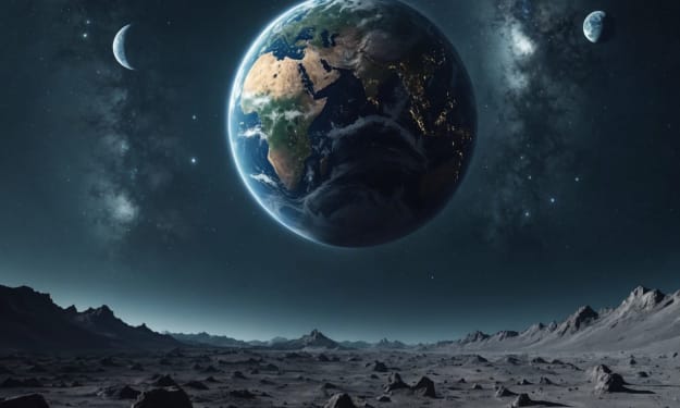I have been here for three years alone. I am fascinated seeing the light in the night sky being Earth, my home planet. I came here with the crew to explore and look for minerals other valuables, as well as evidence of old alien civilisations or visitors.