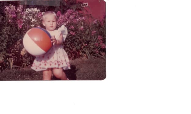 I’m beginning a small series of songs involving the feminine gender. I begin with songs that have the word girl in the title, then move on to woman, and then I had the thought that after woman, the next highest status would be queen. Since there are songs with the word queen in the title then it would be appropriate to include them. The photo is of me as a little girl with my favorite beach ball.