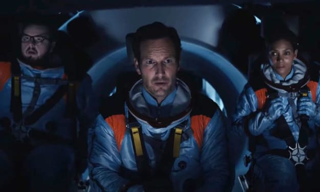 Moonfall stars the charisma vacuum that is Patrick Wilson, continuing in his astonishing magic trick, fooling the world into seeing him as a movie star. Wilson plays a NASA astronaut, Brian, who, while debating the lyrics of the song Africa by Toto, because random counts as a personality in a movie like Moonfall, sees a massive alien destroy the satellite he’s working on, killing a fellow astronaut.