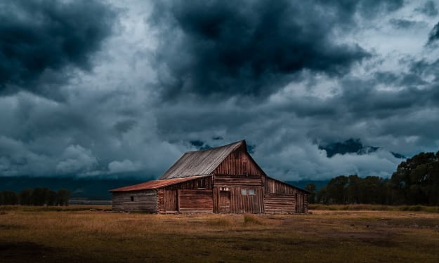 Icy pellets of rain pelt the frozen barren ground, twinkling from the setting twilight as each drop travels downward. A lone barn owl perches high on a windowpane that lost its glass decades ago. The white round face eerily floats in front of a black background, always watching…always seeing. No longer a home to livestock, the rust-colored barn leans slightly northward as if shouldering itself against a mighty winter wind. While once majestic, this aged farm structure has become home to field mice, stray cats, and the occasional coyote in search of nourishment. Snuggled in a straw nest, a momma cat nurses days-old six kittens, eyes still sealed shut from birth. Its contented purring does not impress the owl; bored with the family bonding moment, it turns its face once again to the horizon.