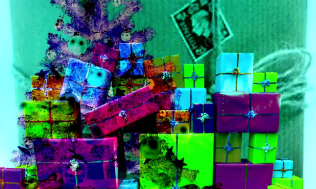 The presents wrapped in brilliant neon shades clustered together under the tree as if sheltering from the rain. They were big and small, thin and floppy, thick and bulky; boxes clad in red paper and blue and gifts caked in glitter and tied with fine ribbon. Stacked atop one another in a precarious pile, they were a mound of joyful mystery at the foot of the conifer.