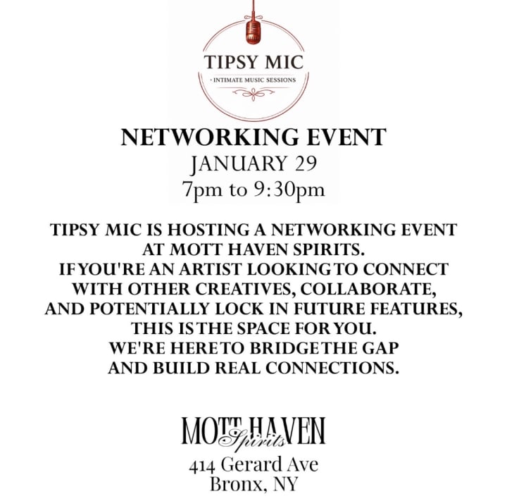 The upcoming networking event on January 29th from 7pm to 9:30pm pushes the concept further. This is not networking in the traditional sense where business cards change hands with no follow up. It is connection built through shared presence. Artists who perform are immediately part of the conversation. Those who attend gain access to creatives, supporters, and peers who are actively building.