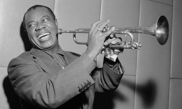 American jazz musician, trumpeter, and singer Louis Armstrong was born in 1901 and grew up in New Orleans, Louisiana. At a young age he learned to play the cornet and in his teen learned music by listening to the pioneer jazz artists of the day among them the leading New Orleans cornetist, King Oliver. He played in marching and jazz bands.
