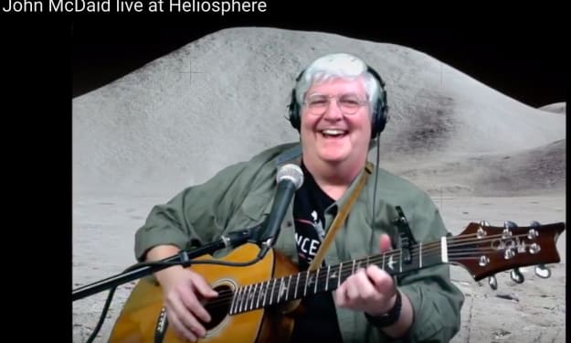 Let me introduce you to John G. McDaid. He was my student in the MA in Media Studies Program at the New School for Social Research in New York City in the early 1980s. I was delighted when his first professionally published science fiction story "Jigoku No Mokushiroku" (in Asimov's Science Fiction magazine) won the Sturgeon Award in 1995, right around the time one of my first published stories, "The Chronology Protection Case," in Asimov's older sister magazine, Analog, was nominated for the Nebula Award. I was pleased when I began to see John start showing up in Media Ecology Association conferences about a decade later, singing a variety of catchy songs.
