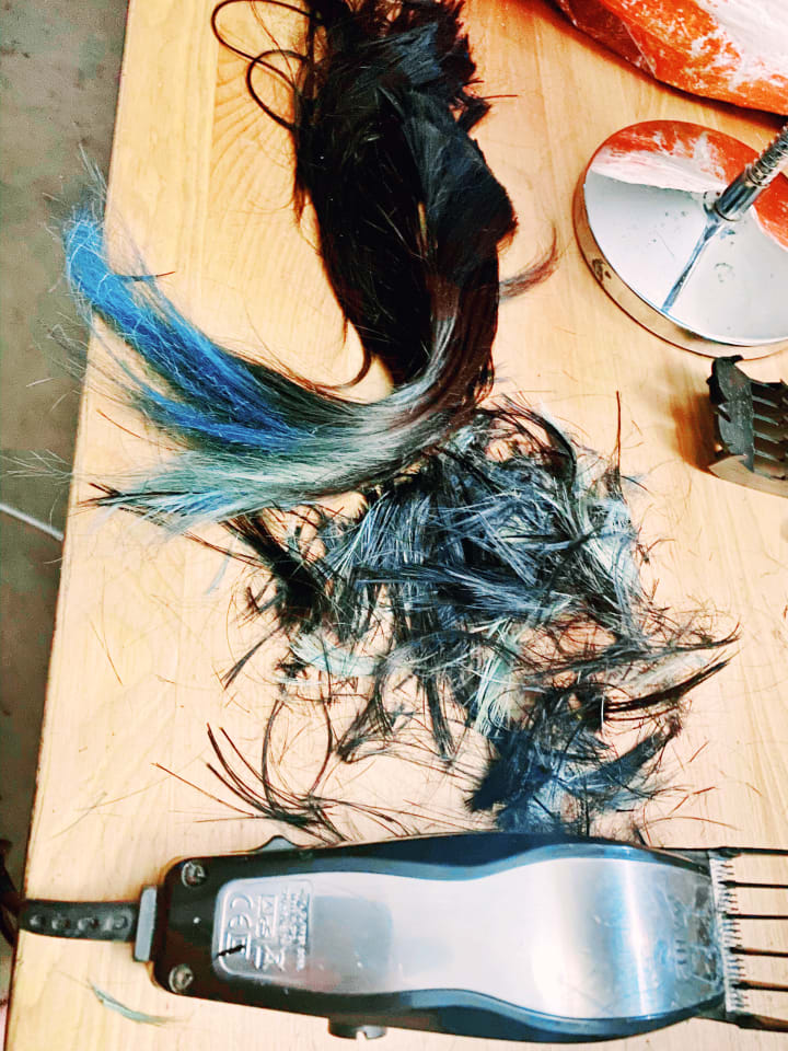 Now tell me that taking some clippers to your hair doesn't feel good? Scary as hell but ever so exciting at the same time. It may not be the smartest of choices to do yourself (and if you've never cut your own bangs at least once, I don't suggest start lopping all your hair off unless you are brave) but hair grows back and feeling good about yourself lasts forever. And that was just what this was for me. Wanting to feel good about myself again. Get my fierce back. I let myself fall down a hole of compliance and ignoring my feelings. Ignoring who I was and can be. I wanted that back.