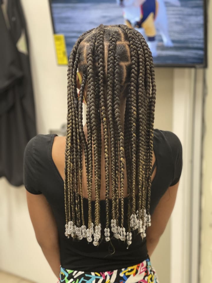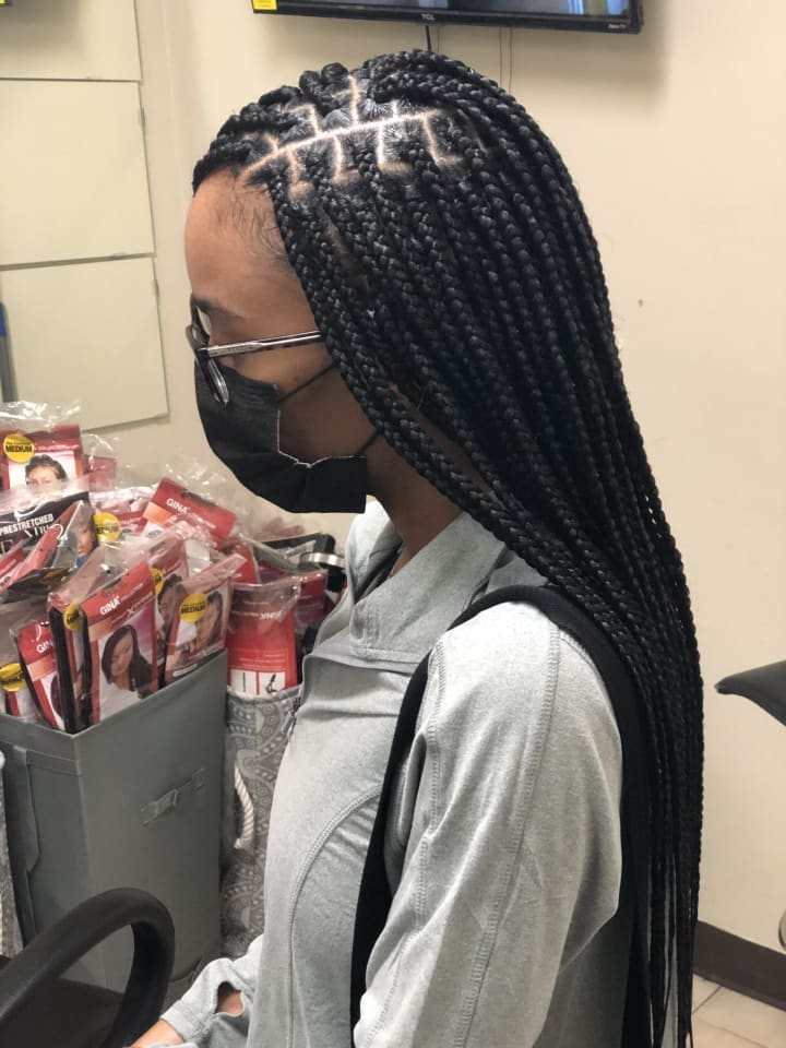 For sizing reference, Large Knotless Braids have between 6-8 rows from ear to ear.
