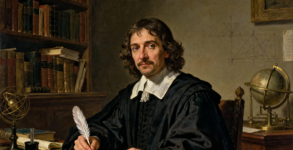 Descartes, who was proud and aloof, never asked passers-by for alms. He just silently lowered his head and wrote and drew on paper, lost in his mathematical world.