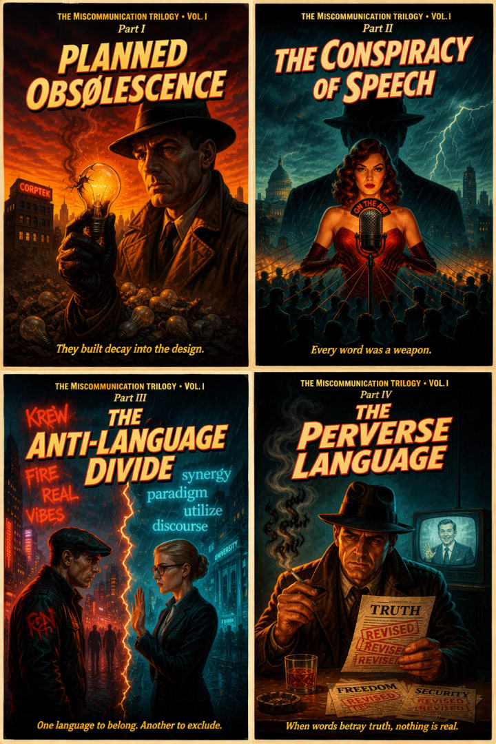 As the final part of Volume I in THE MISCOMMUNICATION TRILOGY, The Perverse Language performs a synthesising function. The first part diagnosed obsolescence; the second exposed conspiratorial speech; the third mapped anti-linguistic fragmentation. This book gathers those strands and demonstrates their culmination in inversion. Language, under certain conditions, ceases to mediate shared understanding and instead stabilises distortion.