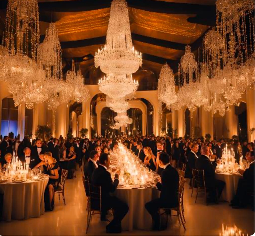 Champagne flowed from bottles. The drops of liquid gold displayed effervescence within the glasses. Around the ballroom, the people cheered. The hostess for the night stepped to the podium.
