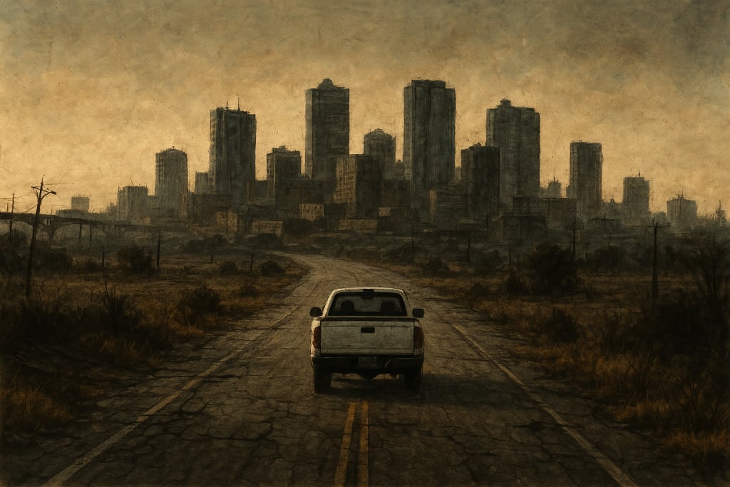When Charles reached the bottom of the path that normally led to the town road, he saw the tow‑truck blockade exactly where he expected. Sitting atop it, completely at ease with an old hunting rifle across his lap, was a tall, lanky man named Jimmy. He was someone’s nephew or cousin who had happened to be visiting when the world decided all the graves were full. He certainly wasn’t the brightest, but he was a deadly shot with that rifle—something proven by the number of bodies strewn across the road at roughly the same distance from his tow‑truck perch.