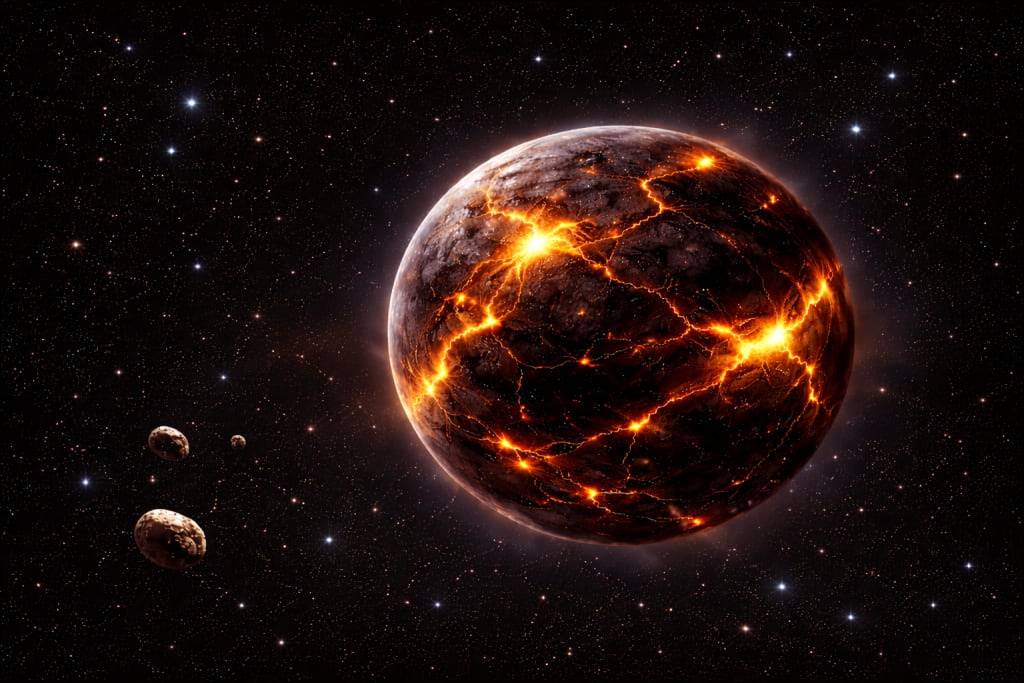 “We believe that this is the center of impact.” said Bunta pointing at a large amber orange crater on the planet. “Its understood that there is no way to access this as it is too dangerous, however we believe that you can collect samples of the crater run off in the lava streams that have been created off the crater center. They are everywhere on the planet now. We believe that a sample of this will tell us what may have caused this.”