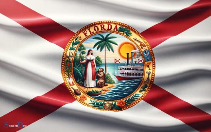 Panels included in the image above: Florida’s Flag — White field, red diagonal cross (saltire), state seal at center.
