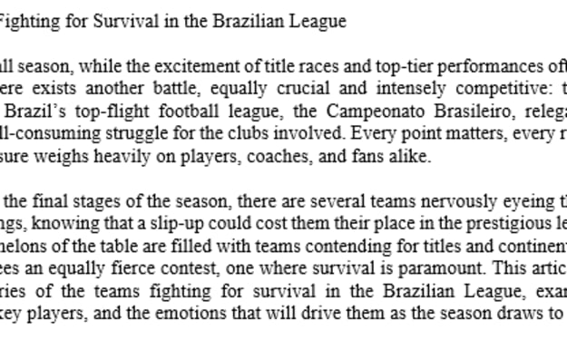 The Teams Fighting for Survival in the Brazilian League Every football season, while the excitement of title races and top-tier performances often steals the spotlight, there exists another battle, equally crucial and intensely competitive: the fight for survival. In Brazil’s top-flight football league, the Campeonato Brasileiro, relegation battles become an all-consuming struggle for the clubs involved. Every point matters, every result counts, and the pressure weighs heavily on players, coaches, and fans alike.
