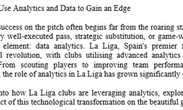 How La Liga Clubs Use Analytics and Data to Gain an Edge In modern football, success on the pitch often begins far from the roaring stadiums and cheering crowds. Behind every well-executed pass, strategic substitution, or game-winning tactic lies an increasingly critical element: data analytics. La Liga, Spain's premier football league, has embraced the digital revolution, with clubs utilising advanced analytics and data to gain a competitive edge. From scouting players to improving team performance and predicting opposition strategies, the role of analytics in La Liga has grown significantly over the past decade.