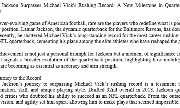 Lamar Jackson Surpasses Michael Vick's Rushing Record: A New Milestone in Quarterback History. AI-Generated.