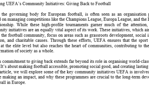 Exploring UEFA’s Community Initiatives: Giving Back to Football. AI-Generated.