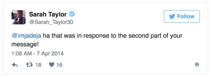 After seeing her tweets, we can tell that Jadeja was talking about their recent performances. Soon they realised that everyone can see their conversation. So, Sarah Taylor asked Ravindra Jadeja to follow her on twitter so she can be able to direct message him. However, Sarah Taylor kept replying him through tweets. Soon the conversation turned a bit personal as they talked about that the fans who were watching their tweets and thinking something else. In the end, both decided to meet each other near the pool at 10 AM. Here below are screenshots of Sarah Taylor’s replies to Jadeja