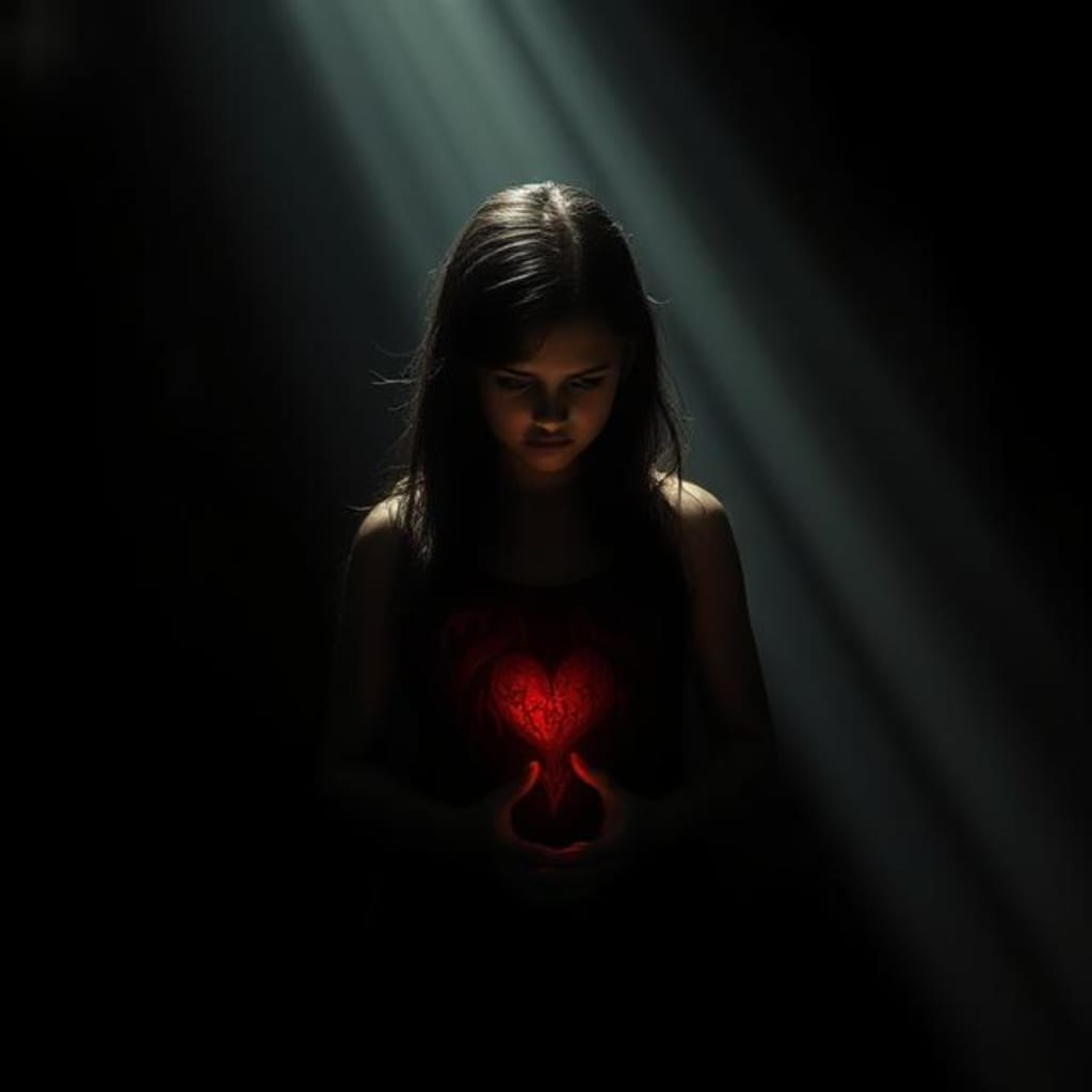 She grips her heart — a shining, vulnerable thing —
