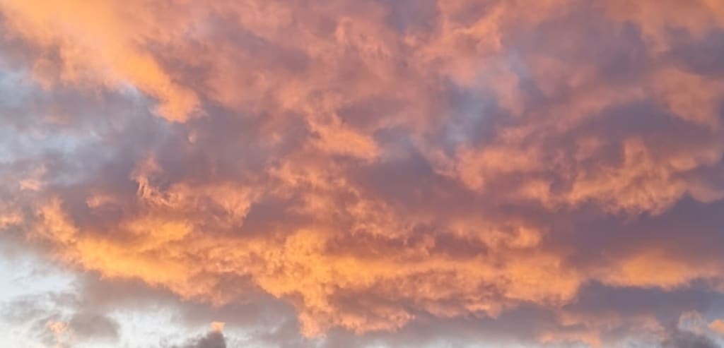 The retriever's inclination for swimming meant that Lyn was alone until she reached the lake. Lyn released a long exhale. Her heartbeat slowed, and she stood in quiet awe of the scene before her. Blue began to seep its way into the expanse of pink, and the wisps of cloud above her were cracked, their boundaries lava-like, ablaze in a conflagration of yellows and oranges. Above the opposite hill lined with pine sat a timid sun, peering over the crest and bathing the land beneath in stilled gold. The lake beneath shimmered, the warm shades reflected from above belying the water’s surely juxtaposing iciness. The temperature made no noticeable difference to Ike, who had come racing out of the water; his head cocked to the side, with a branch twice his length trailing behind him. He stopped at Lyn’s feet, his bouncing and rearing up on to his hind legs a clear indication that he wanted it thrown back out onto the lake.