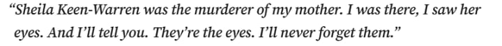In 2014, the case was finally reopened, and new DNA testing was conducted. A cold case team confirmed that the hair recovered from the getaway vehicle belonged to Sheila.