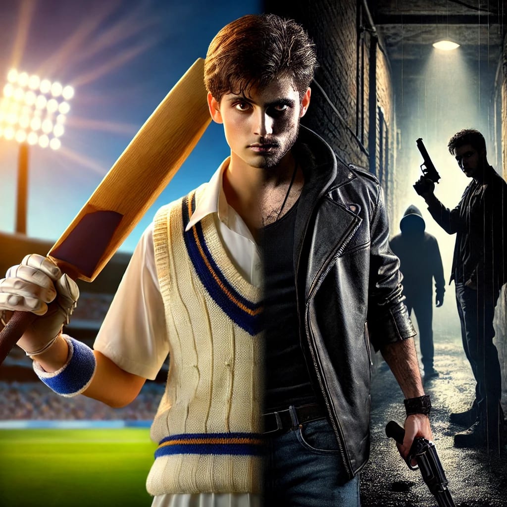 (The sun shines brightly as a young and talented cricketer, ARYAN (19), smashes a six. The crowd cheers. Among them, AYESHA (18), his beautiful and supportive girlfriend, claps proudly.)