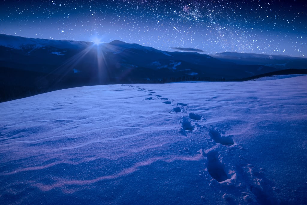 Gerald’s hand tightened at his chest. His breathing grew shallow. He teetered and fell back in the snow. I scanned around us again; still clear. The anxiety of being caught faded, replaced by the sight before me.