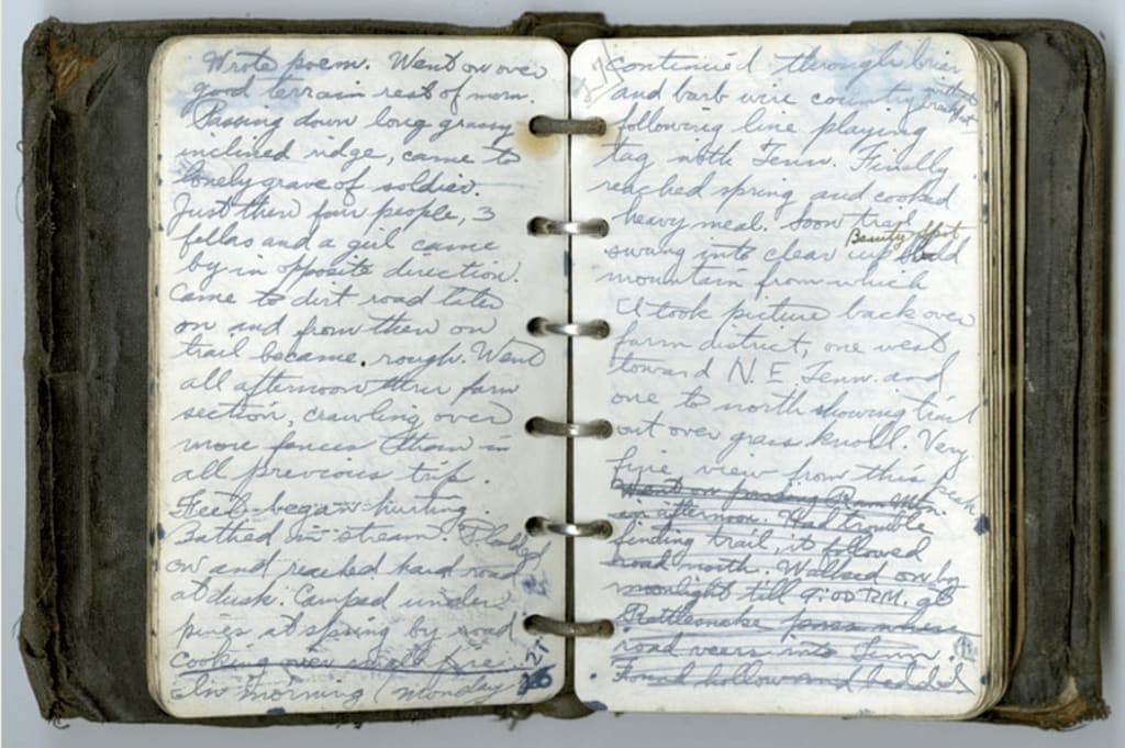 All kinds of thoughts began to fill Jennings head. Freaked out, Jennings picked up the book and flipped backwards to find a name of the author. At the beginning he found not a name; but, two initials; “G.S”. Gloria was the name of one of his favorite neighbors; a nice older lady that lives near the end of the hall. It can’t be the same person. What the hell was going on around this place? Flipping forward he found J.D.’s initials written in blue ink. The paragraphs that followed were written in the same blue ink, with a left handed slant. This was definitely a different person’s hand writing.