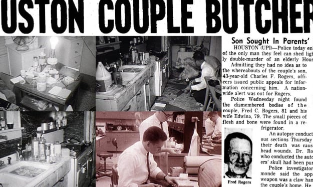 Charles Frederick Rogers (December 30, 1921[1] – disappeared June 23, 1965) was an American seismologist, pilot, and murder suspect who disappeared in June 1965 after police discovered the dismembered bodies of his elderly parents in the refrigerator of the Houston home all three shared, in what the media later dubbed "The Icebox Murders". Rogers has never been found and was declared dead in absentia in July 1975. He remains the only suspect in the murders, which are still considered unsolved.