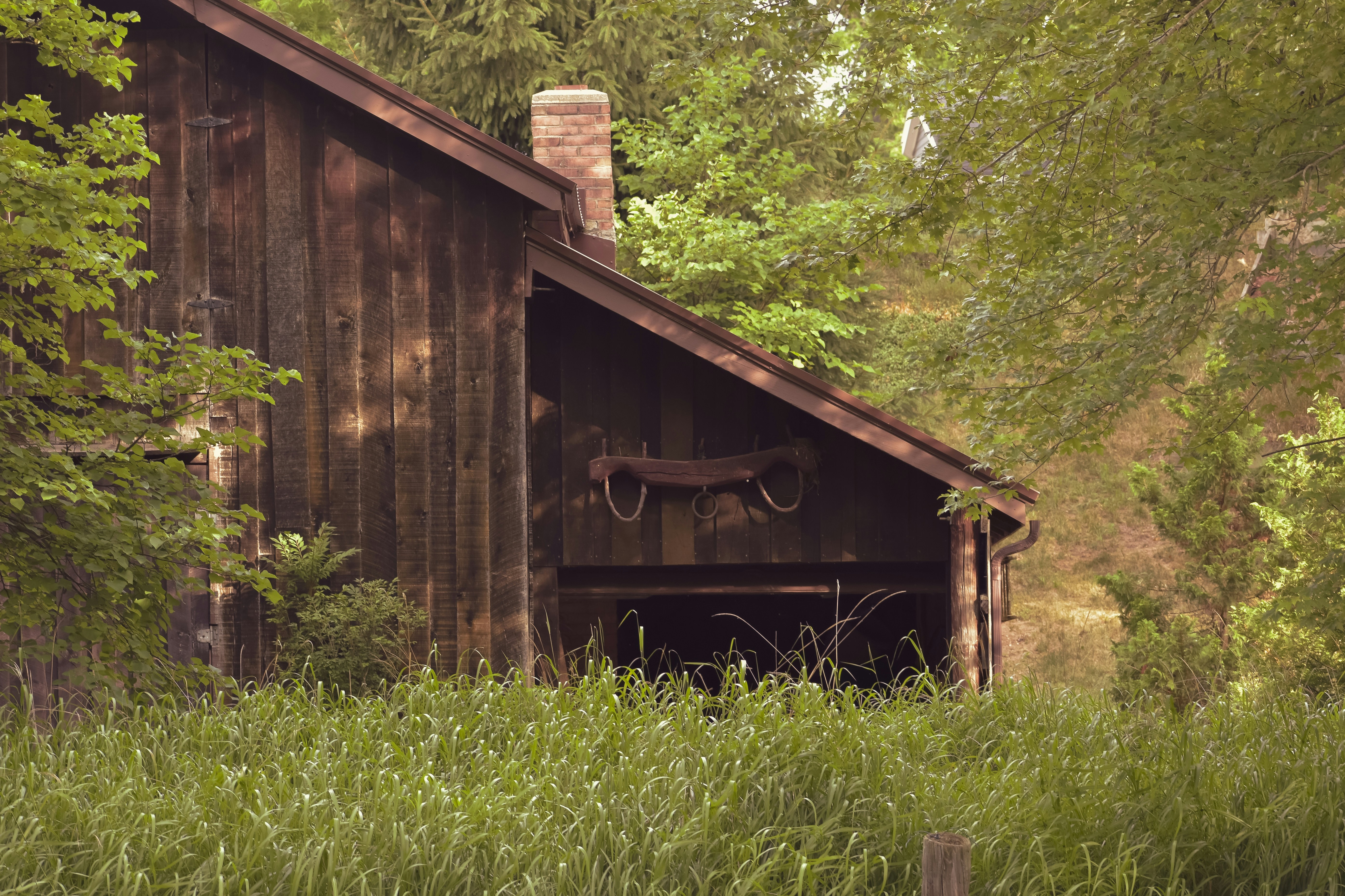 We turned down a gravel road that was even more shadowed by trees. We were driving straight into the forest for what seemed like an hour, but it was only ten minutes or so. Dana drove slowly over the gravel so the rocks wouldn’t spring up and ding the paint of her new car. We finally approached a house at the end of the road, an unkept dark wood A-frame house. It seemed like a resort home that was left to rot; dead leaves covered the porch that had no shortage of exposed nail heads and broken boards. Cobwebs and old hornets nests decorated window frames and eaves. The windows were dark and dirty but intact. Shingles were rotting and falling off the side of the home. The screen on the storm door was ripped and the inner door looked faded and scratched but strong.