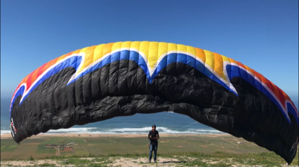 He thinks for a moment; $20,000 would fund his entire project. Then without hesitation, straps on his pack, lays out his wing, catches the air and begins a slow jog toward the cliff leaning forward, taking off straight into the wind. Nigel yells at him in surprise, but he cannot hear anymore and is already passed the point of no return.