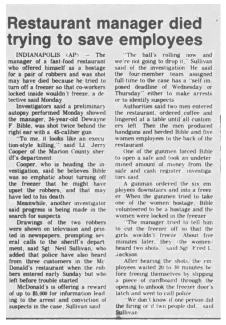 Tragically, one fact remains certain: at least one person responsible for Dewayne Bible’s murder was never brought to justice. To this day, their identity—and whether they went on to commit other crimes—remains unknown.