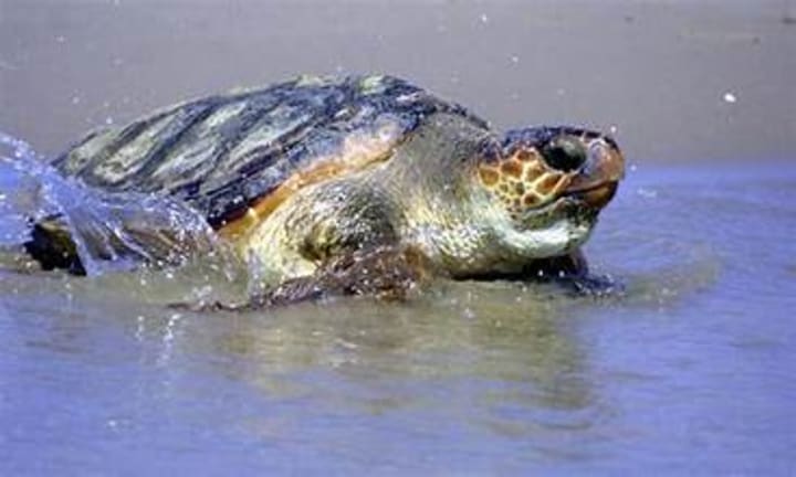 Loggerhead sea turtles are a species of oceanic turtle found in the Atlantic Ocean, the Mediterranean Sea, and parts of the Pacific and Indian Oceans. Female turtles come ashore to lay eggs. These turtles spend their lives in estuarine or saltwater habitats.