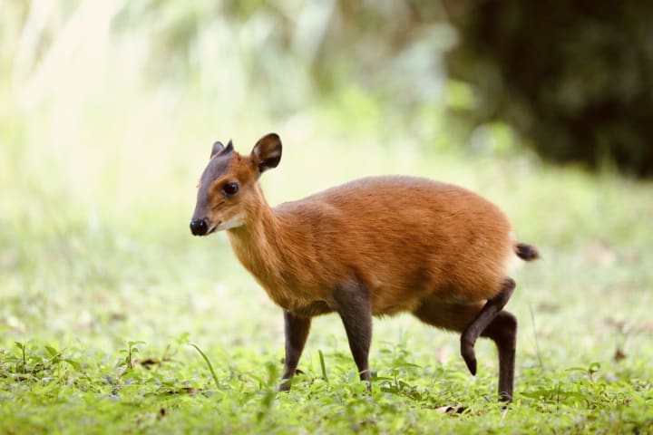 Red-flanked duikers are a small species of antelope that are native to West and Central Africa. They feed on leaves, seeds, flowers, and fruit. These antelopes inhabit lightly wooded and savanna habitats. Mostly active right after dusk.