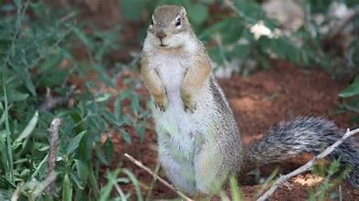 Striped ground squirrels are a species of squirrels native to Africa. They are solitary or live in pairs. These squirrels hide in burrows with a central nest. They do not climb trees and forage for food on the ground like seeds, roots, and nuts.