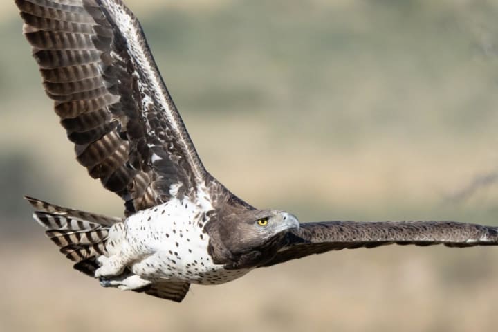 Martial eagles are a large species of eagles native to sub-Saharan Africa. These birds are attracted to the thorny trees of the open savannas. They feed on mammals, reptiles, and birds.