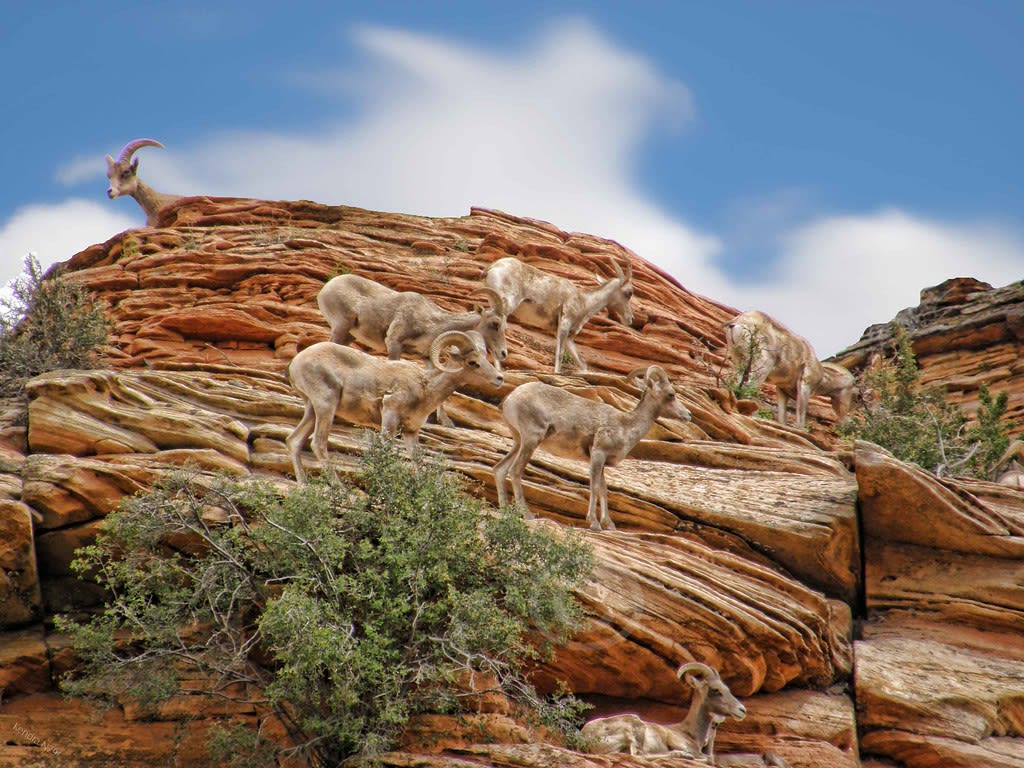Zion National Park is home to cougars, bobcats, badgers, bighorn sheep, ring-tailed cats, rodents, and deer.